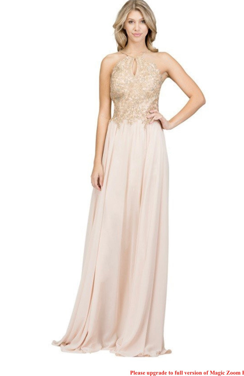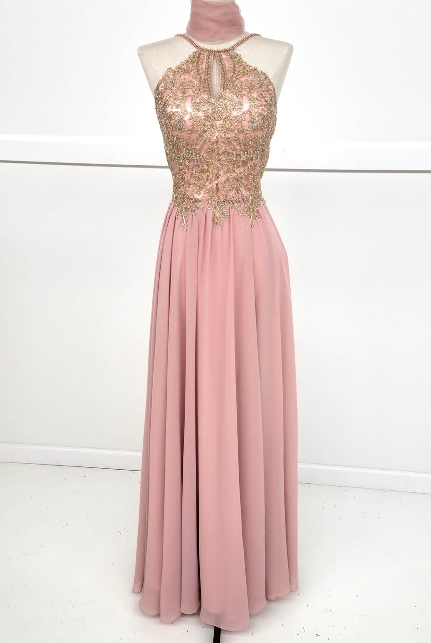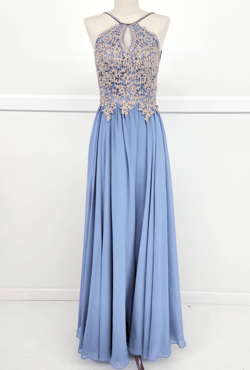 Elegance meets romance in this Chicas evening gown, style C1521. Featuring a flattering A-line silhouette, the dress boasts a beautifully beaded floral bodice with a keyhole neckline and delicate straps. The flowing chiffon skirt adds graceful movement, making it perfect for formal events, proms, or weddings. Available in a wide variety of colors, this gown ensures the perfect look for every occasion.