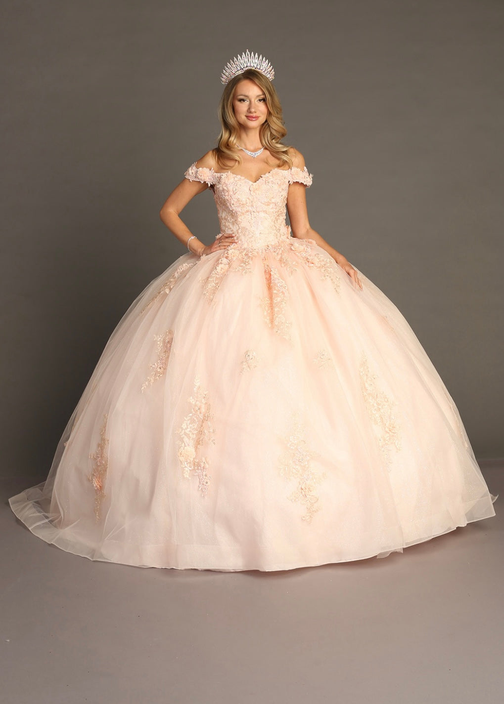 Feel like royalty in this breathtaking ball gown by Chicas, style CHF3066, designed by Chicas. This enchanting off-the-shoulder dress features a sweetheart neckline and a voluminous tulle skirt embellished with delicate 3D floral appliqués. The fitted bodice is adorned with matching floral lace, enhancing the fairytale charm. Perfect for quinceañeras, pageants, or grand entrances, this stunning yellow gown offers a magical, princess-like silhouette that captivates with elegance and grace.
