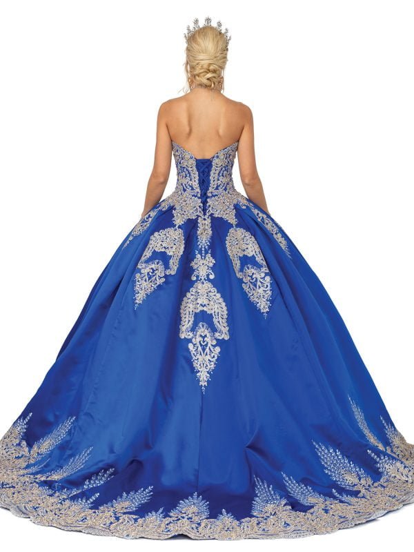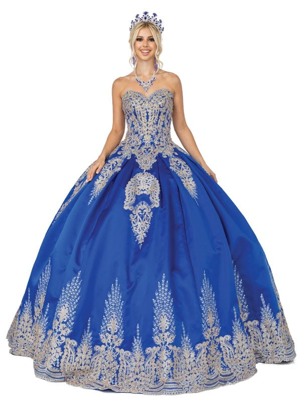 Celebrate your milestone in timeless style with the Dancing Queen Quinceañera Dress 1494. This elegant ball gown features an off-the-shoulder neckline and a structured bodice adorned with delicate embroidery and sparkling embellishments for a luxurious touch. The full, layered skirt flows gracefully, showcasing intricate appliqués that add depth and movement to the silhouette. A lace-up corset back allows for a customizable and secure fit, ensuring comfort and confidence throughout your special day. Perfect for making a grand entrance, this gown embodies beauty, tradition, and sophistication.