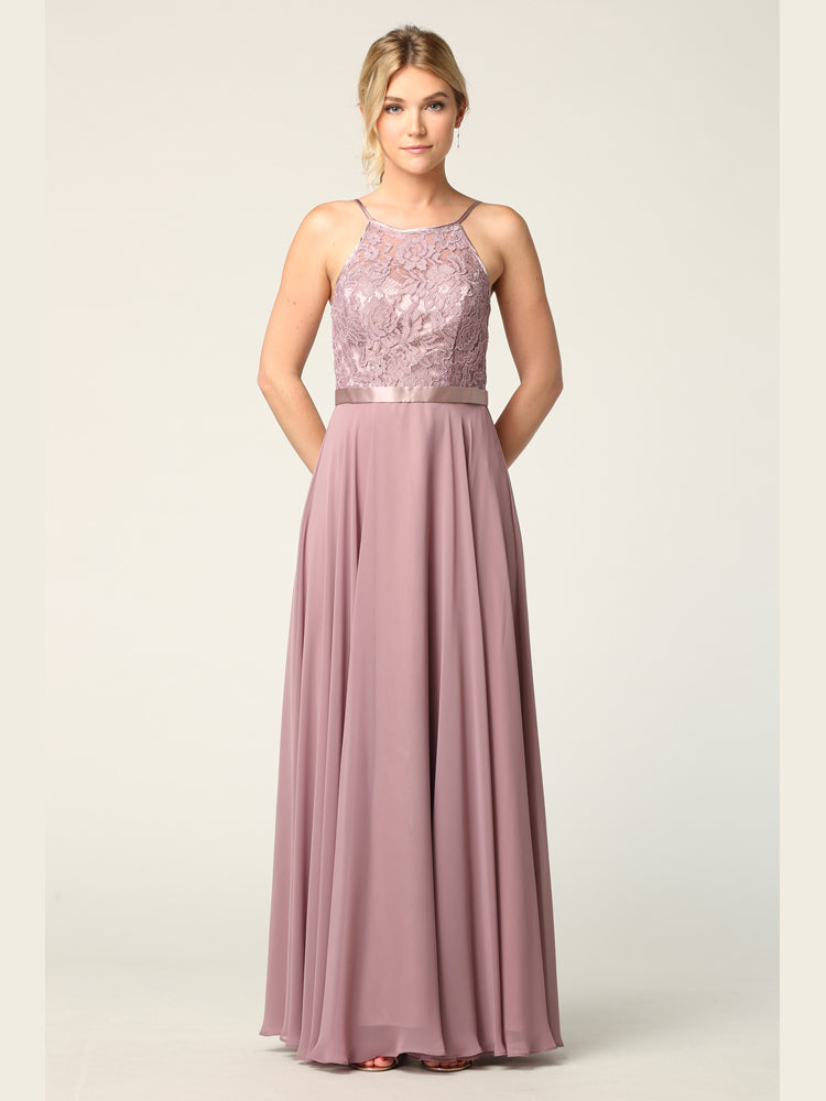 The Eva Evening Gowns 3216 showcases a refined balance of elegance and modern design. This gown features a delicate lace halter neckline that highlights the shoulders with timeless sophistication. The cross-back detail adds a graceful touch, while ensuring a flattering fit from every angle. Flowing effortlessly, the chiffon skirt creates movement and charm, making it a perfect choice for formal occasions, special events, or evening celebrations.