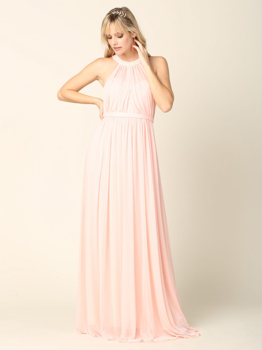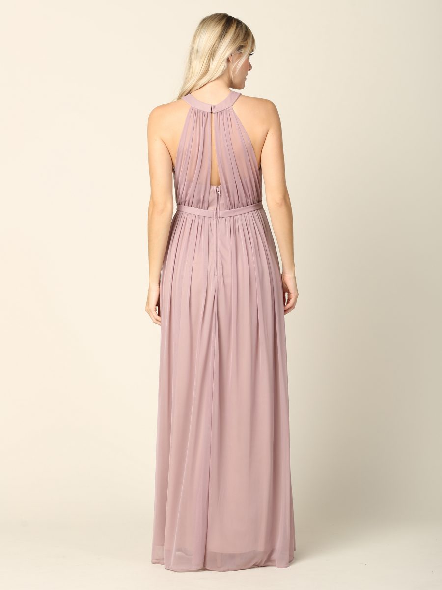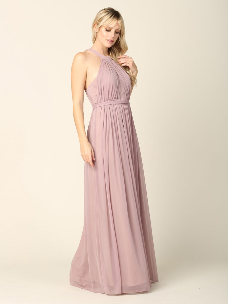 The Eva Evening Gowns 3252 is an elegant choice designed to combine sophistication with comfort. Crafted in stretch chiffon, this gown features a graceful halter neckline that flatters the shoulders and neckline. The fitted bodice flows seamlessly into a soft, floor-length skirt, offering a timeless silhouette ideal for formal occasions, weddings, or evening events. Its design emphasizes both elegance and ease of movement, making it a refined option for any special celebration.