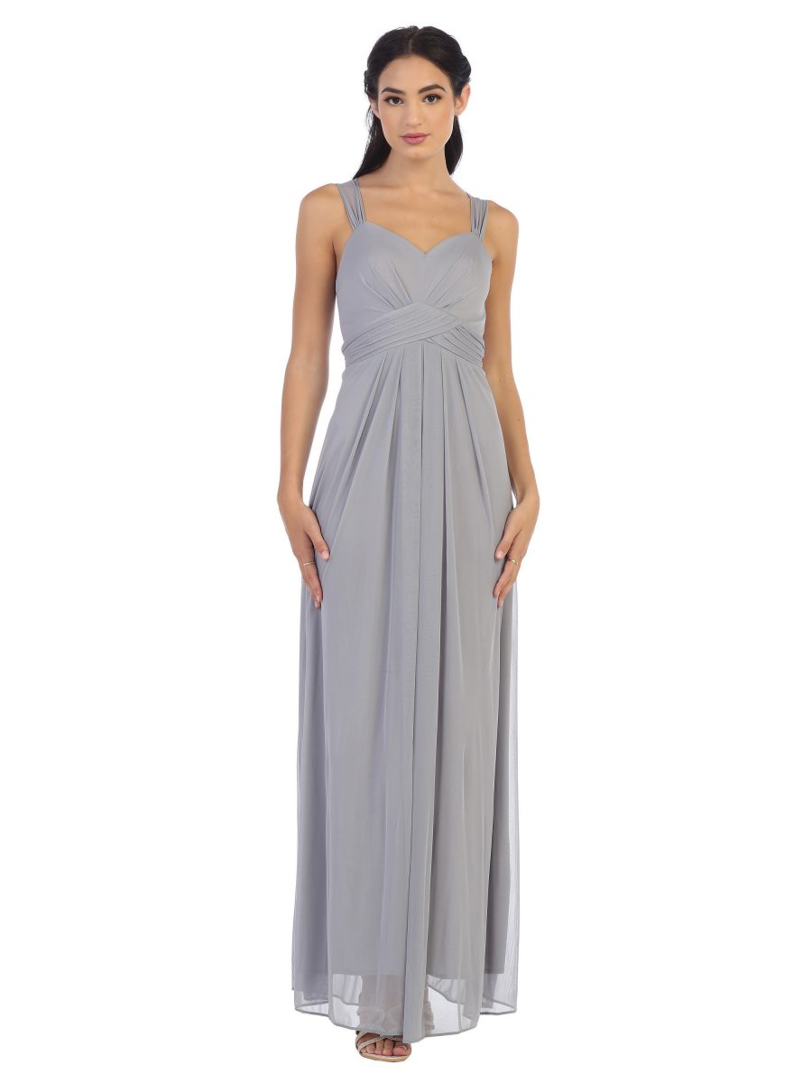 The Eva Evening Gowns 3269 is a sophisticated stretch chiffon gown designed with elegant pleating that enhances its timeless silhouette. The fitted bodice flows gracefully into a flattering skirt, offering both comfort and style for any formal occasion. Crafted with attention to detail, this gown provides a refined look perfect for weddings, galas, or evening events.