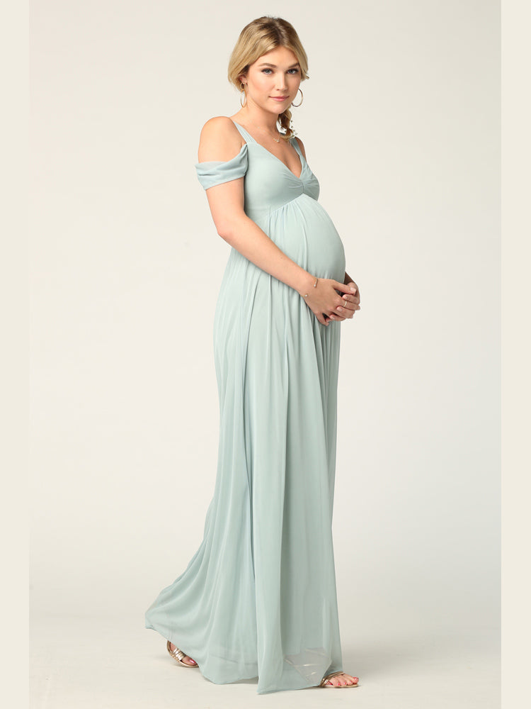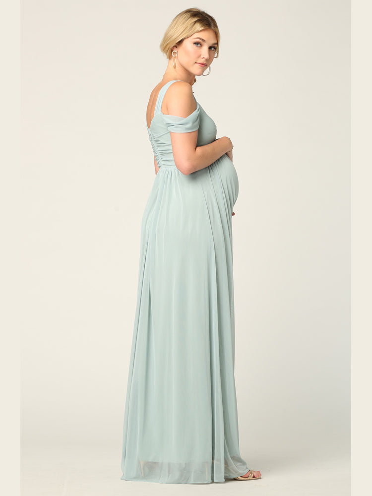 The Eva Evening Gowns 3321 is an elegant off-shoulder gown designed with an empire waist that beautifully accentuates the figure while providing comfort and ease of movement. Perfect for maternity wear, this gown offers a graceful silhouette suitable for special occasions, formal events, or evening celebrations. Its sophisticated design combines style with comfort, making it an ideal choice for those seeking both elegance and practicality.