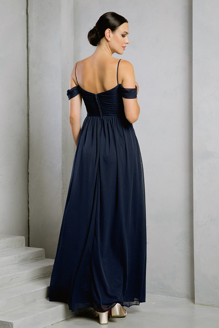 The Eva Evening Gowns 3494 is a sophisticated off-shoulder design crafted in a luxurious blend of chiffon and matte jersey. This elegant silhouette is tailored to provide both comfort and style, making it a perfect choice for formal events, weddings, or special celebrations. Designed to accommodate both bridesmaids and maternity wear, it offers a flattering fit that enhances natural elegance while allowing ease of movement. Its refined construction and timeless appeal make it a versatile addition to any formal wardrobe.