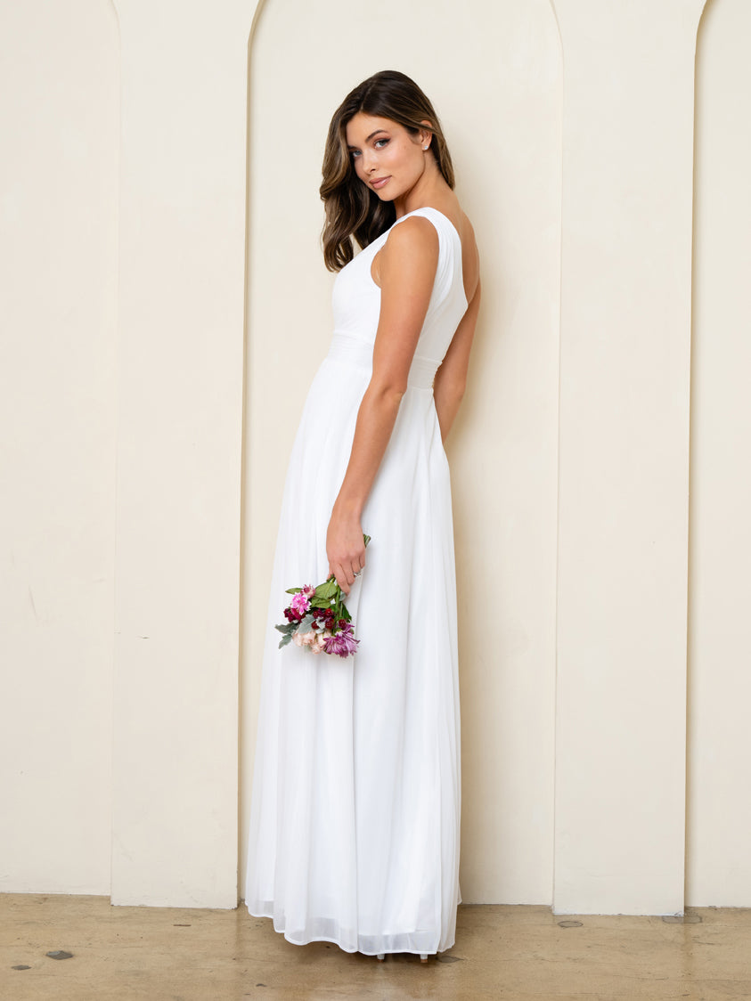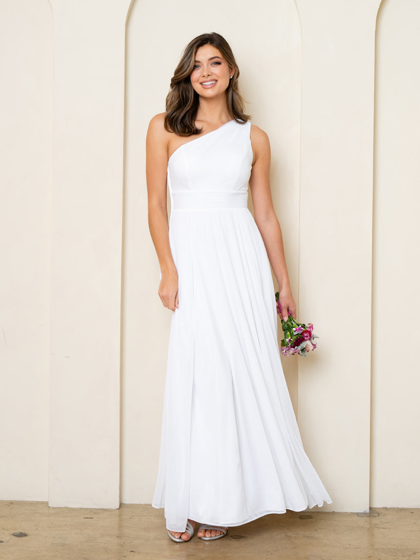 The Eva Evening Gowns 3516 features an elegant one-shoulder design crafted from luxurious stretch chiffon for a comfortable yet sophisticated fit. Its sleek silhouette and refined draping create a timeless look, perfect for formal occasions, weddings, and special celebrations. Designed to flatter the figure, this gown combines modern elegance with classic charm, making it a standout choice for your next event.