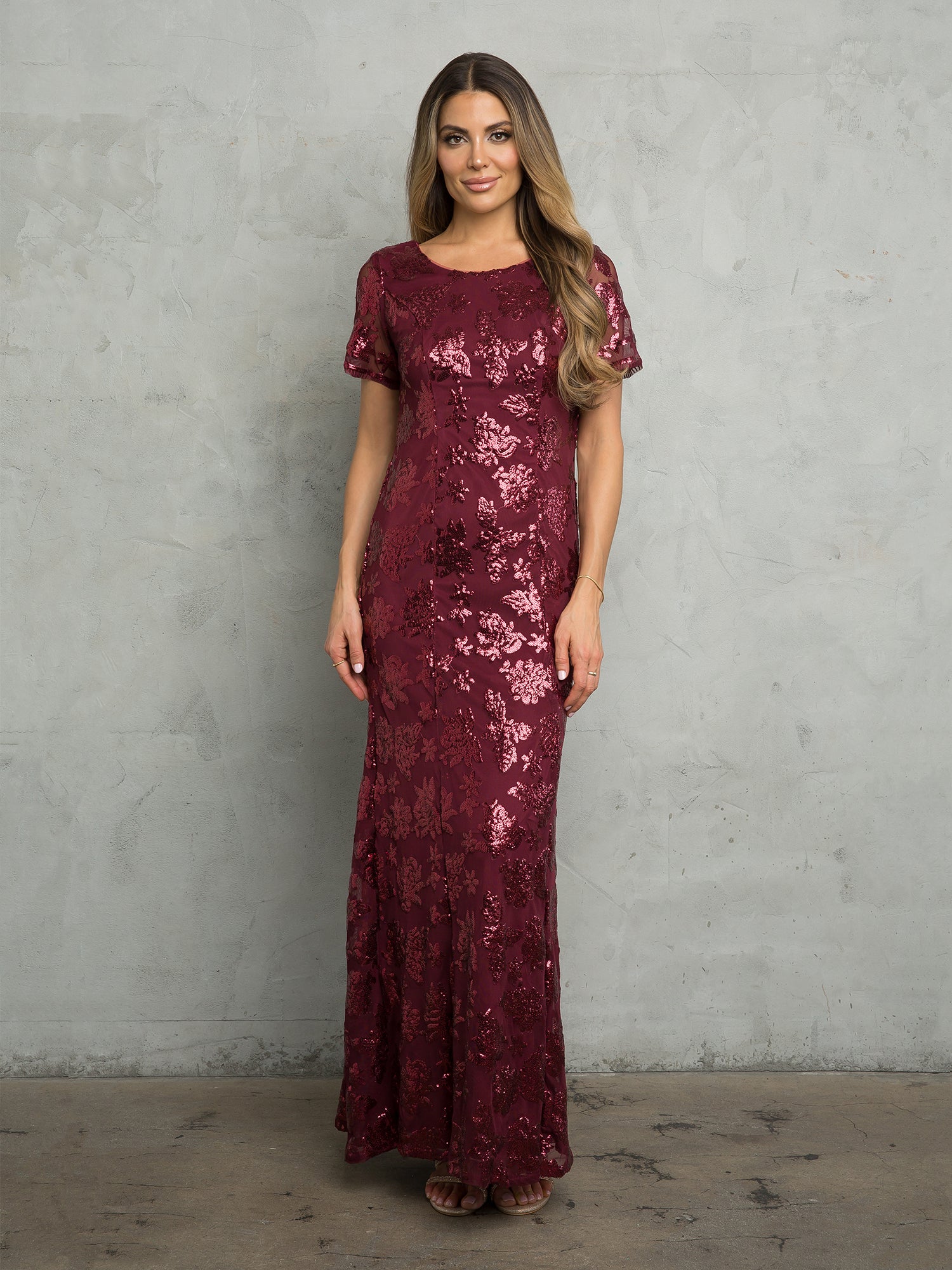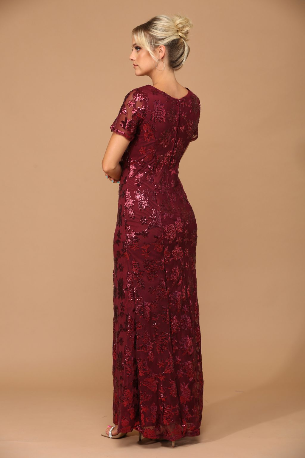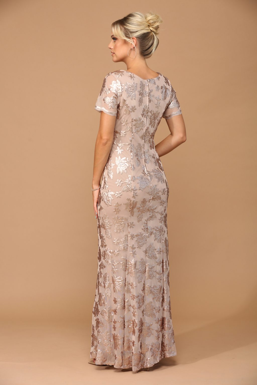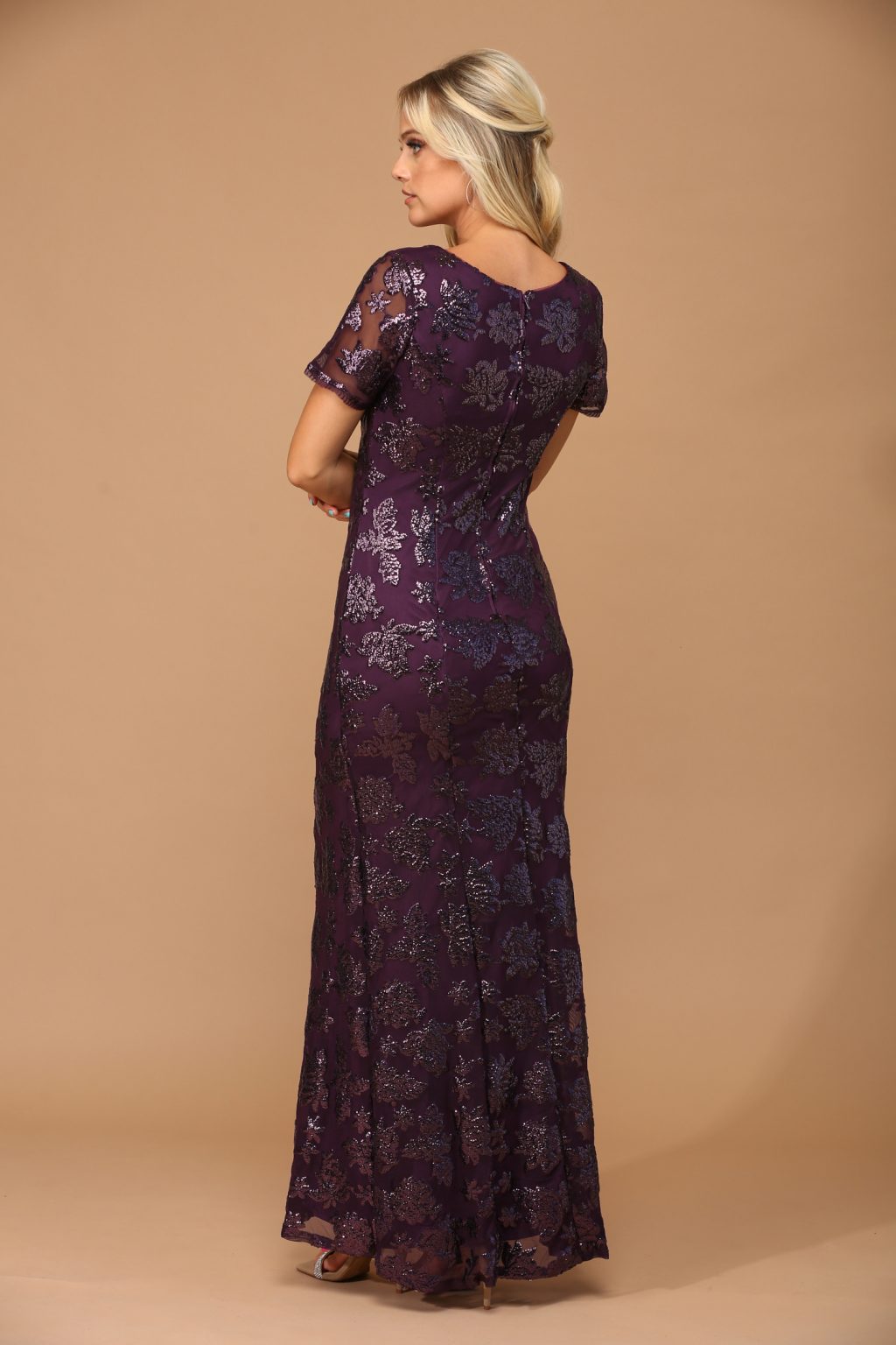 The Eva Evening Gowns 3456 is an elegant short sleeve sheath gown designed to make a sophisticated statement. This beautifully crafted dress features a fully sequined design that adds a touch of glamour to any special occasion. Its tailored silhouette flatters the figure, while the back zipper closure ensures a secure and seamless fit. Ideal for formal events, weddings, or special celebrations, this gown offers timeless style and graceful charm.