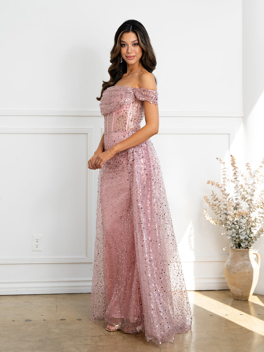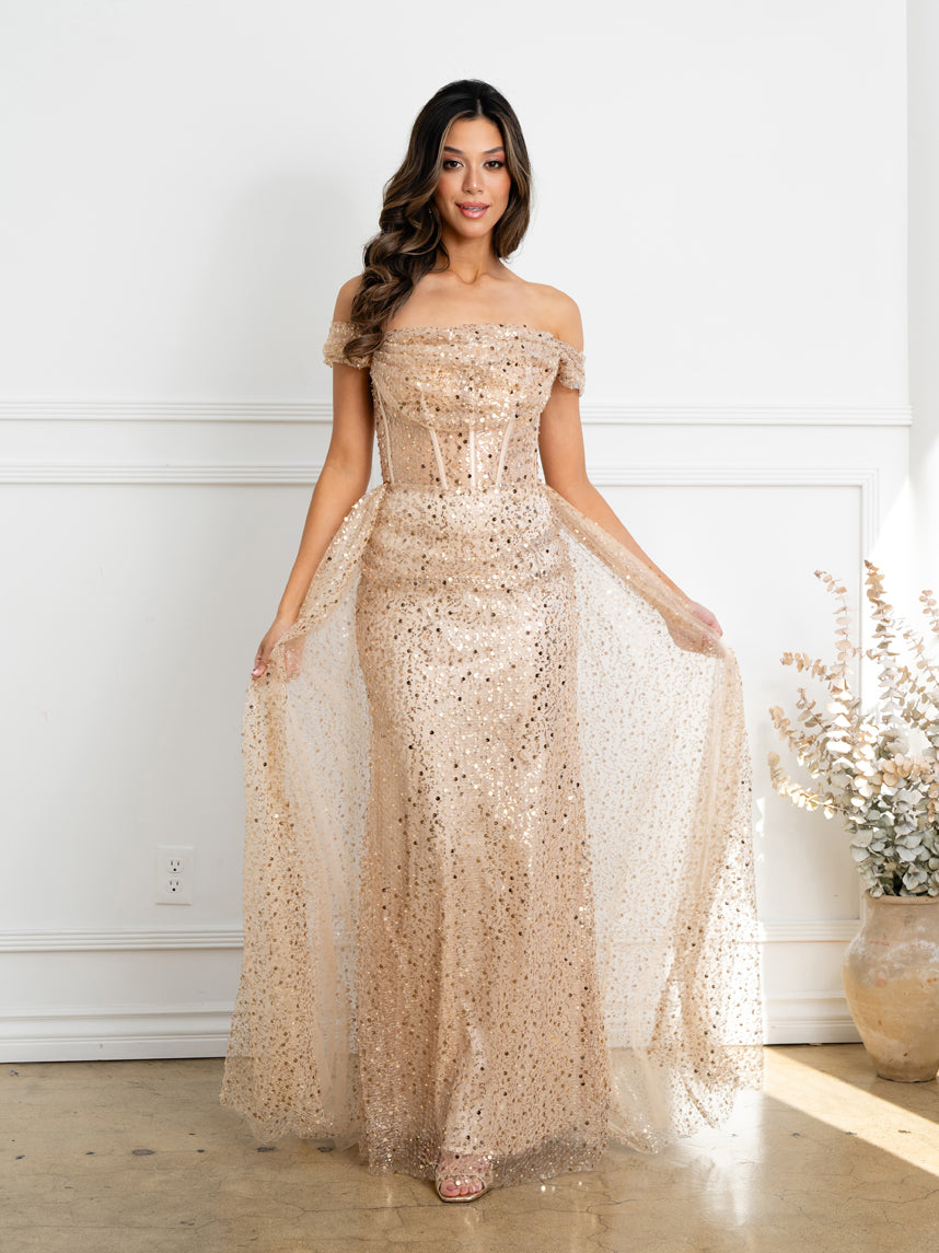 Make a captivating entrance in the Eva Evening Gowns 3502, a stunning off-shoulder beaded gown that perfectly blends elegance and glamour. Designed with a structured corset bodice, this gown enhances the silhouette while offering a secure and flattering fit. The intricate beadwork adds a touch of luxury, creating a sparkling effect that’s ideal for formal occasions, galas, or red carpet events. With its refined details and timeless design, this gown ensures all eyes will be on you.