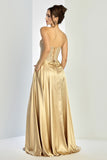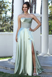 Turn heads in the elegant Adora Evening Gown style 3254. This sophisticated sage satin gown features a unique strapless neckline with a draped satin overlay for a soft, romantic effect. The semi-sheer corset bodice is beautifully adorned with shimmering beadwork, offering both structure and a hint of allure. The flattering A-line skirt flows gracefully to the floor with a high slit that adds a modern touch of drama and showcases your legs with every step. Perfect for prom, formal occasions, or special evening events, this gown combines timeless elegance with trendy details.