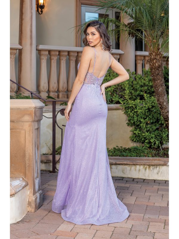 Make a stunning entrance in the Dancing Queen 4348 evening gown. This glamorous dress showcases a fitted silhouette with a beautifully ruched bodice that enhances your curves. The sweetheart neckline is supported by delicate spaghetti straps, adding a graceful touch to the overall design. The gown features shimmering embellishments that run along the bust and down the thigh-high slit, creating a dramatic and sophisticated look. Perfect for prom, pageants, or any formal event, this dress is designed to make you feel elegant and confident all night long.