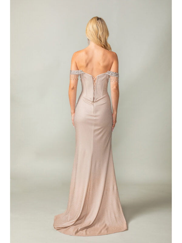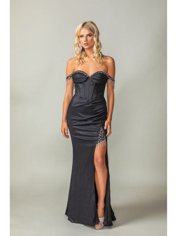 Step into timeless glamour with the Dancing Queen 4368 evening gown, available in a variety of captivating colors. This breathtaking dress features a fitted silhouette with a ruched bodice that enhances your natural curves. The strapless neckline adds a touch of elegance, while the floor-length skirt with a high side slit brings just the right amount of drama and sophistication. A shimmering waistband detail accentuates the waist, making this gown perfect for prom, pageants, or any formal occasion where you want to make a statement.