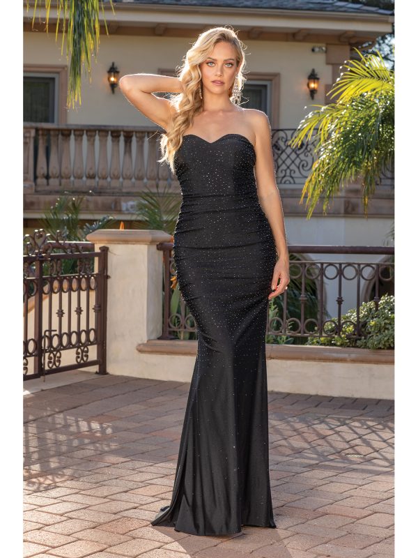 Make an unforgettable entrance in the stunning Dancing Queen 4286 evening gown. This glamorous dress showcases a deep V-neckline supported by delicate spaghetti straps and a beautifully fitted bodice adorned with sparkling sequins and intricate beading. The dress flares into a mermaid-style silhouette with a high slit that adds a touch of drama and elegance. Ideal for proms, formal galas, and special occasions, this gown offers a perfect balance of sophistication and allure.