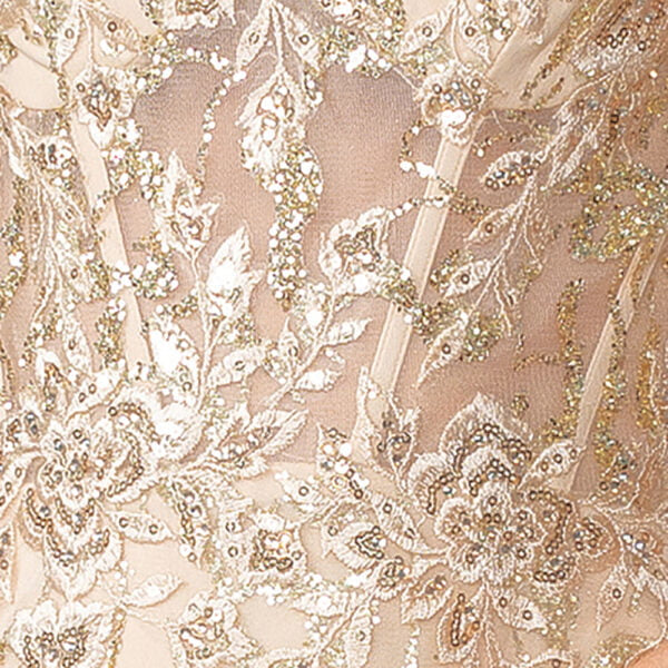 Step into elegance with the Dancing Queen Evening Gowns Style 4461. This exquisite gown features a structured sweetheart neckline with sheer illusion details and intricately beaded lace appliqués that trail gracefully down the bodice. The fitted silhouette hugs your curves before flaring into a floor-length skirt with a soft, sweeping train. Thin straps add a delicate touch, while the open back enhances the overall allure. Ideal for formal galas, pageants, or evening events where sophisticated glamour is a must.