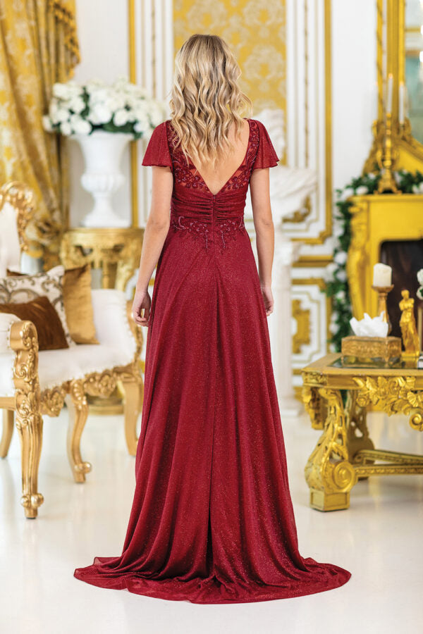 Make a breathtaking entrance in the Dancing Queen 4496 Embellished A-Line Prom Dress. This gown features a romantic A-line silhouette with intricate embellishments throughout the bodice and sleeves. The sheer long sleeves add a touch of elegance and sophistication, while the high slit brings just the right amount of drama and modern flair. Designed to flatter all body types, this dress is perfect for prom, formal galas, or any evening event where you want to stand out with timeless grace and sparkle.