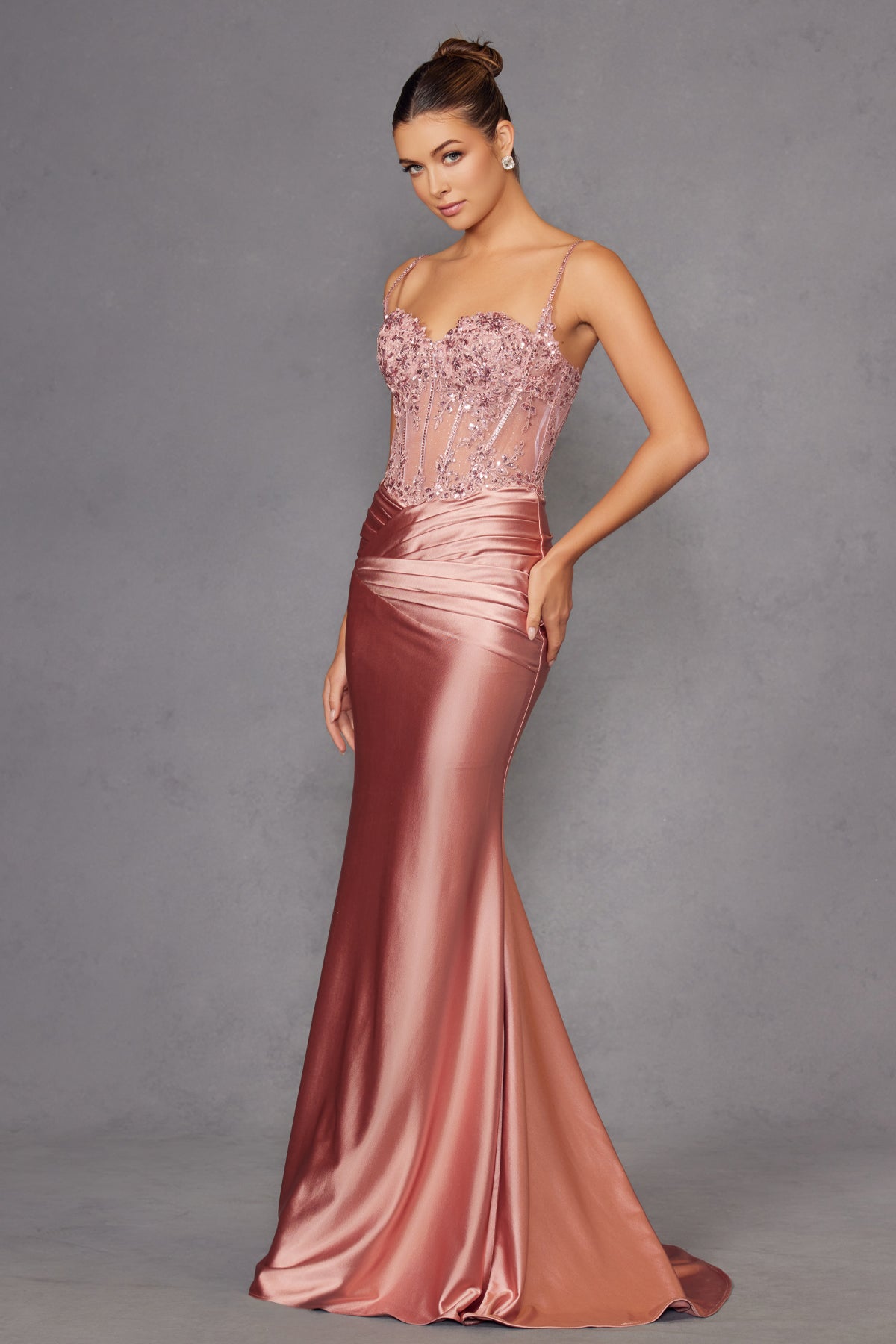 The Juliet Evening Gown JT2531K is a captivating and elegant choice for formal occasions. Its structured corset-style bodice provides both support and a flattering silhouette, while the sweetheart neckline adds a touch of romance. The gown features a high side slit, offering a glimpse of the leg and enhancing its elegant appeal. A subtle sweep train completes the look, adding movement and grace. Crafted from satin fabric, the dress boasts a luxurious sheen that catches the light beautifully. This gown is ideal for occasions such as proms, galas, and formal gatherings, ensuring you stand out with timeless elegance.
