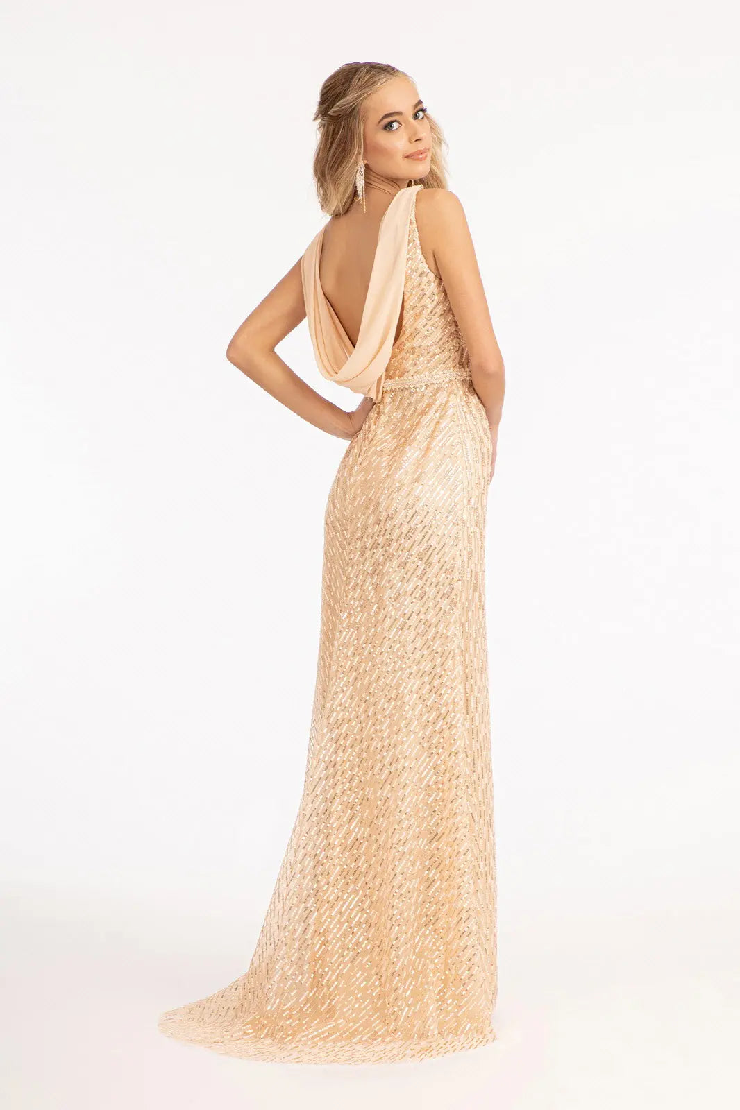 Modern elegance meets subtle sparkle in this lightweight mermaid gown, available in Champagne, Dusty Rose, and Ivory. Crafted in soft mesh with shimmering sequin and bead embellishments, it features clean, minimal lines for a refined bridal look. The highlight is its flowing chiffon drape cape that adds graceful movement and a touch of drama. Perfect for beach weddings, elegant ceremonies, and modern brides seeking sophistication without heavy fabrics.