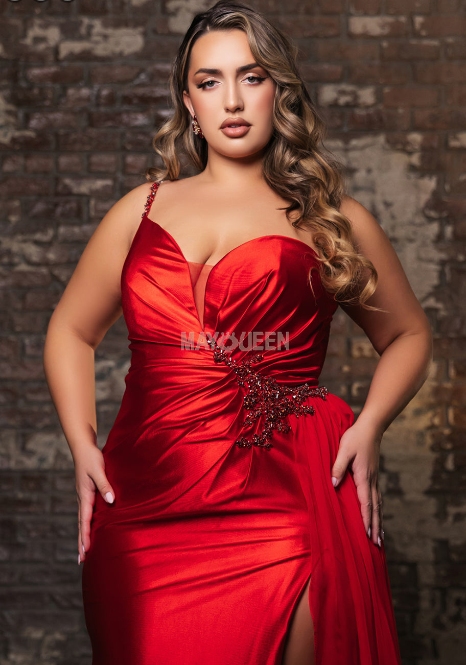 The MayQueen MQ2150 is a captivating evening gown that seamlessly blends modern elegance with timeless sophistication. This design features a one-shoulder strap that adds a touch of contemporary charm, while the ruched bodice and sweetheart neckline with a sheer insert create a flattering and refined silhouette. Intricate beading at the waistline enhances the gown’s luxurious appeal. The floor-length sheath skirt is highlighted by a daring high leg slit and culminates in a dramatic train, making it an ideal choice for proms, galas, or any special occasion where making a statement is desired.