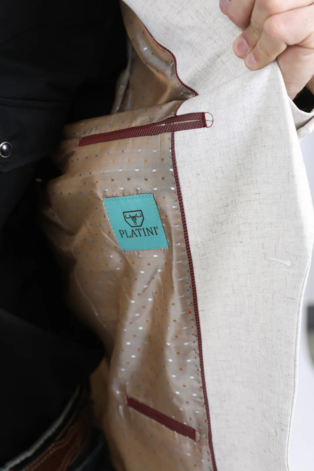 Saco Moderno Vaquero de la Marca Platini en Color Beige con Sus Detalles Vaqueros