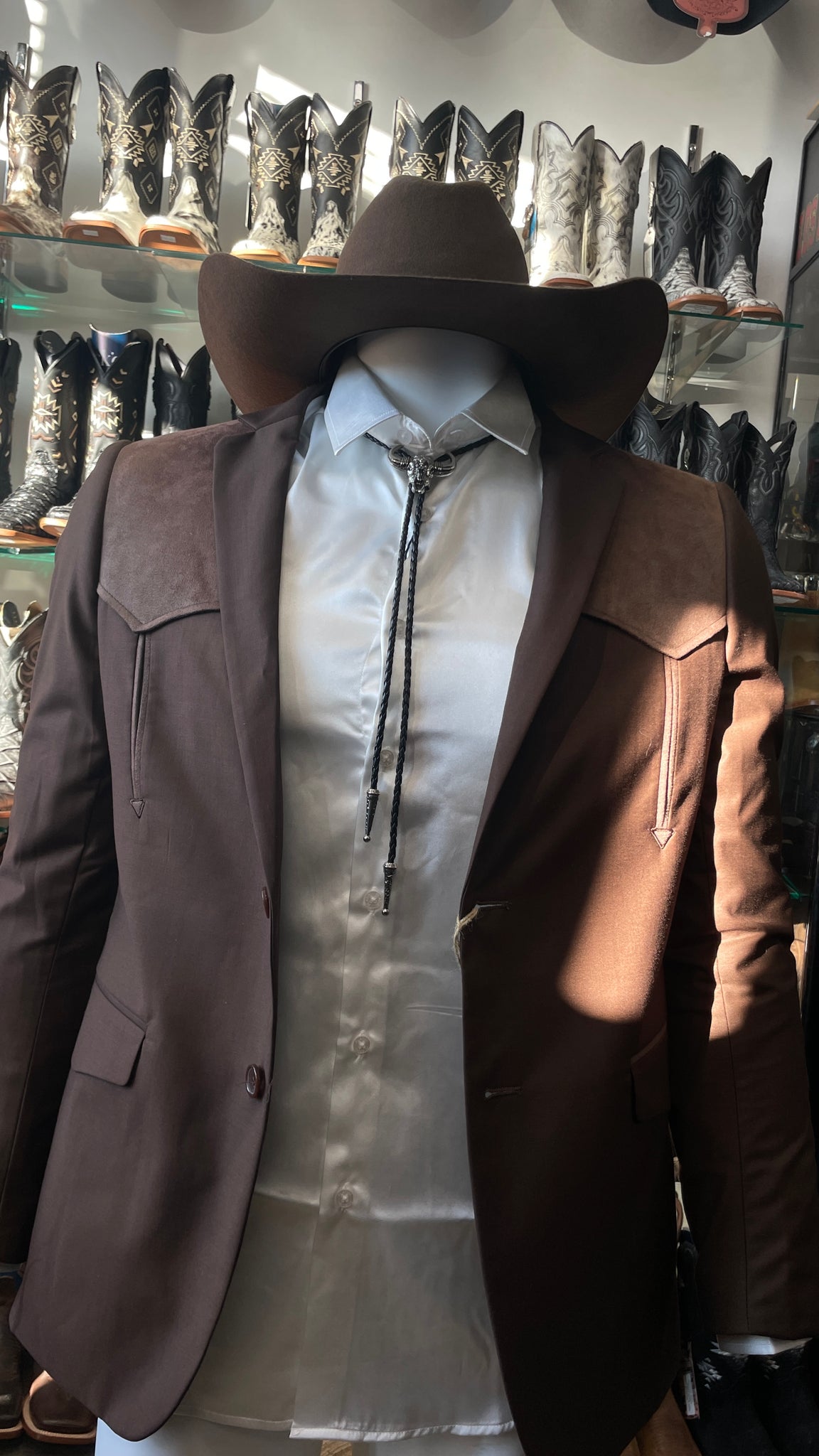 Description: Add a touch of Western charm to your wardrobe with our Men's Western Suit Sport Coat with Suede Yokes. This unique sport coat blends classic Western elements with modern tailoring, featuring suede yokes for a sophisticated yet rugged look. The modern fit ensures a flattering silhouette, making it perfect for both formal and casual occasions.