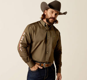 Men’s Ariat Olive Green Team Logo Twill Classic Fit Shirt