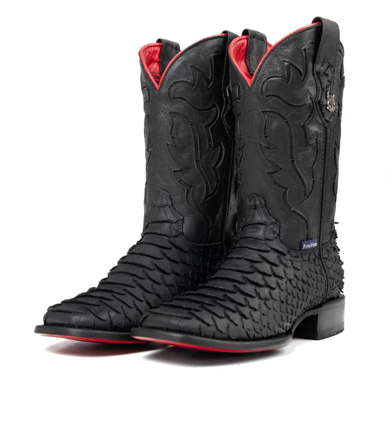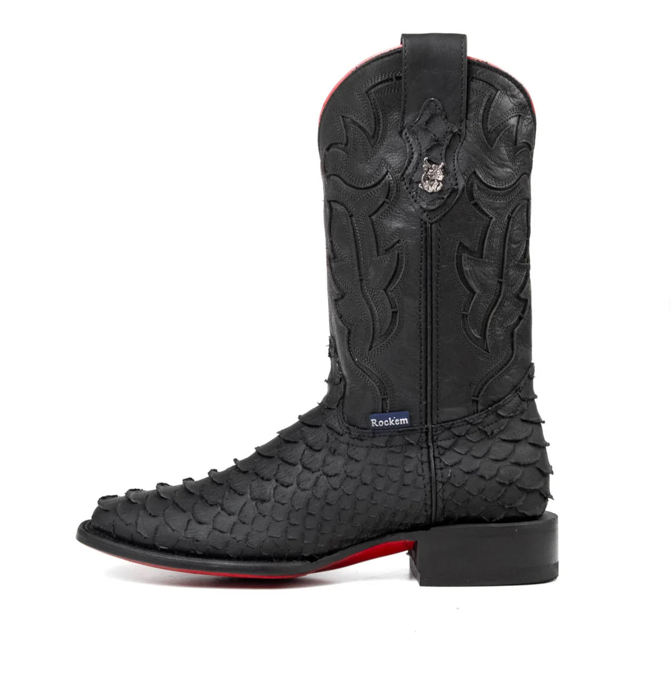 Men’s Rock’Em Bruce Viper Red Bottom Square Toe Boots Black