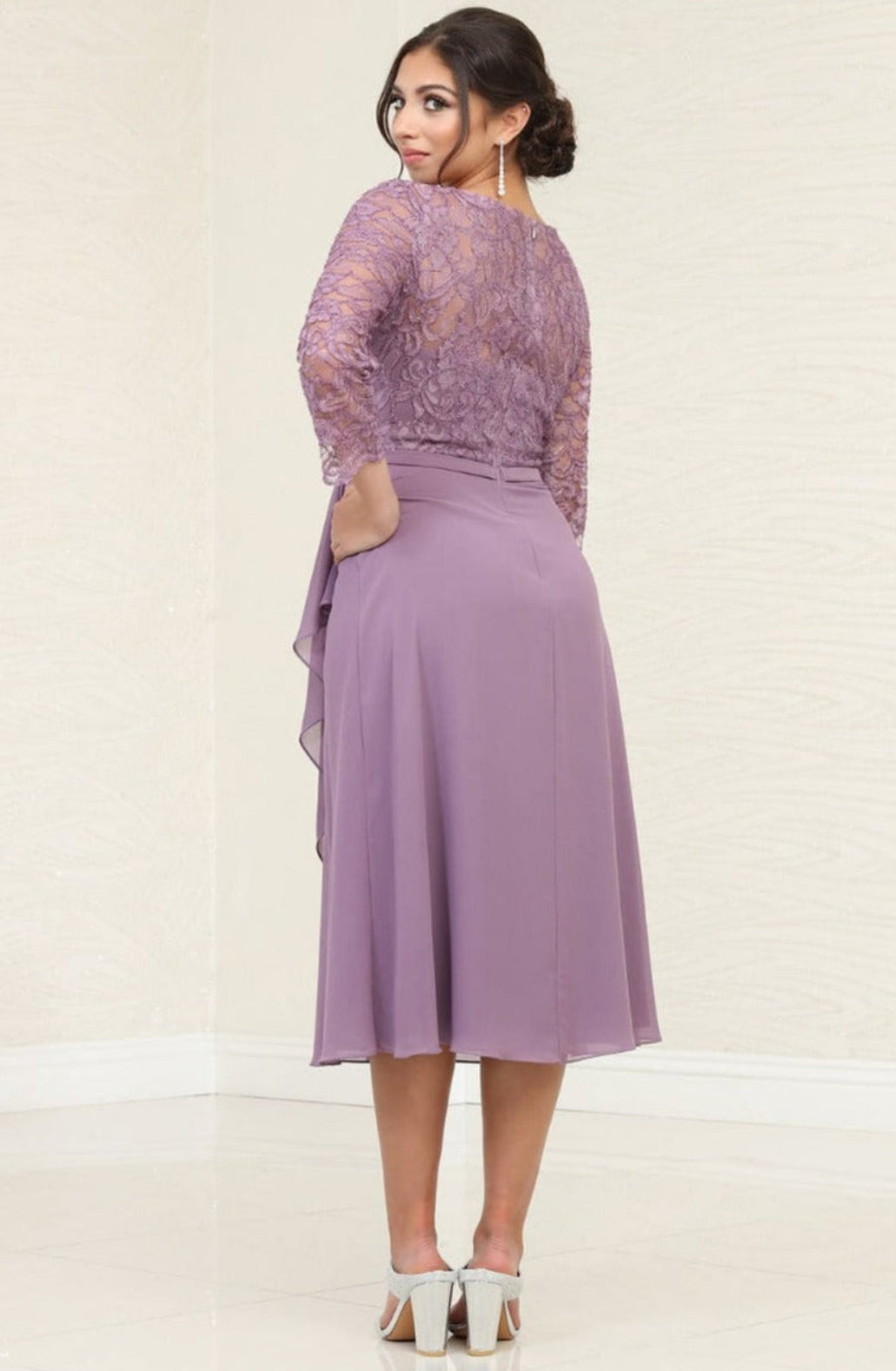 Elevate your presence with the MayQueen Evening Gown MQ2100, a refined design tailored for grace and timeless romance. This gown showcases three-quarter or quarter-length sleeves that enhance its sophisticated silhouette. The neckline features a flattering and structured shape, complemented by delicate floral lace or embroidered mesh overlay that cascades gracefully across the bodice. Intricate ruffle detailing gently flows down the skirt, which softly drapes to a tea-length hem for a polished finish. The bodice incorporates soft-cup padded inserts and is supported by a secured back—either a full back or a concealed zipper—to ensure both poise and comfort. The ensemble is crafted from a combination of chiffon and embroidered mesh, offering an airy feel and gentle movement, ideal for semi-formal events or a mother-of-the-bride ensemble.