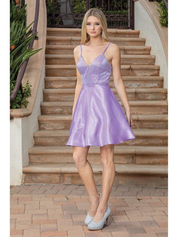 The Dancing Queen Evening Gowns 3318 is a chic and sophisticated short formal dress, perfect for making a confident entrance at any special event. This design features a structured bodice with a deep V neckline, supported by slender straps that enhance the modern, sleek silhouette. A fitted waistline is accentuated with subtle embellishments, leading into a tailored skirt that adds a touch of elegance. Ideal for homecoming, cocktail events, or semi-formal occasions, this dress delivers timeless style with a contemporary twist.