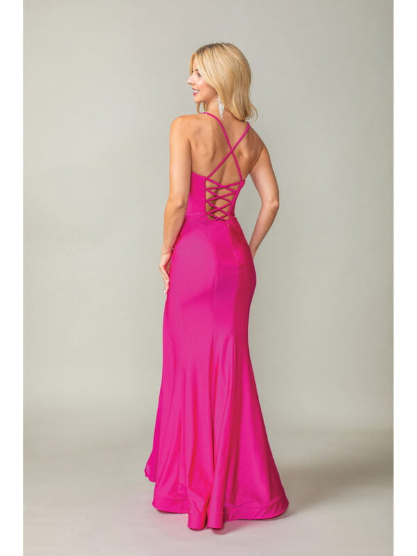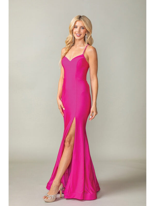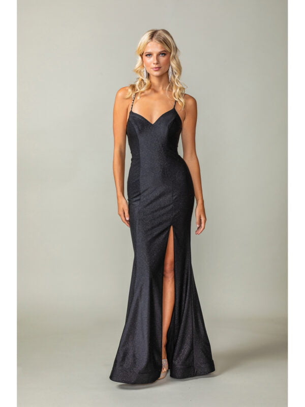 Elevate your eveningwear with the stunning Dancing Queen Gown 4409. This sleek and sophisticated gown features a flattering fitted silhouette with a sweetheart neckline and delicate spaghetti straps that highlight the shoulders beautifully. Designed to enhance your curves, the stretch fabric hugs the body, while the thigh-high slit adds a touch of drama and allure. The gown flares gently at the hem for a graceful, flowing finish perfect for any formal event, from galas to prom nights. Available in bold and elegant color options, this style combines timeless elegance with modern flair.