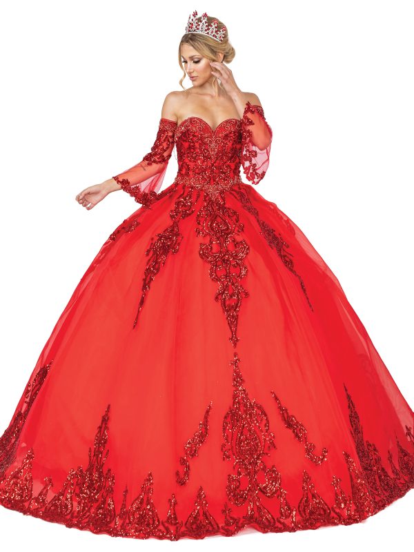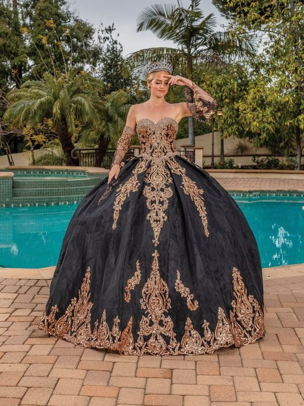 Celebrate your milestone in breathtaking style with the Dancing Queen Quinceañera Dress 1512. This elegant ball gown features a strapless sweetheart neckline and a bodice richly adorned with intricate embroidery and shimmering embellishments that create a luxurious, princess-like look. The voluminous skirt is layered with soft tulle and detailed with ornate appliqués that add movement and grandeur. A lace-up corset back ensures a secure and adjustable fit, enhancing your silhouette while providing comfort throughout your celebration. Designed for a magical entrance and timeless memories, this gown is perfect for your unforgettable quinceañera.