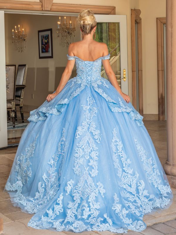 Celebrate your special day in unforgettable style with the Dancing Queen Quinceañera Dress 1741. This elegant gown features a strapless sweetheart neckline and a fully embellished bodice designed to capture attention with every detail. The voluminous ball gown skirt is layered with fine tulle and adorned with intricate embroidery and appliqués, creating a graceful and regal silhouette. A lace-up corset back ensures a comfortable and adjustable fit, offering both support and timeless charm. Perfect for a grand entrance, this gown is crafted to make your quinceañera a truly magical experience.