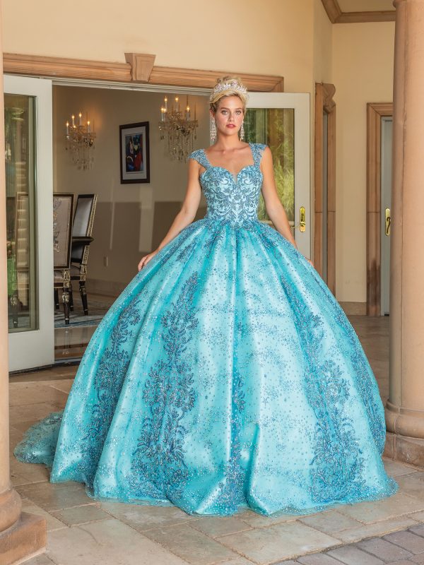 Make a statement of timeless beauty with the Dancing Queen Quinceañera Dress 1784. This exquisite gown features a romantic off-shoulder neckline with an intricately embellished bodice that highlights expert craftsmanship and refined elegance. The full ball gown skirt flows in graceful layers, detailed with delicate embroidery and luxurious appliqués that catch the light with every step. A lace-up corset back provides a secure and adjustable fit, enhancing your silhouette while offering both comfort and support. Perfect for a quinceañera, this gown is designed to make you feel like royalty on your special day.