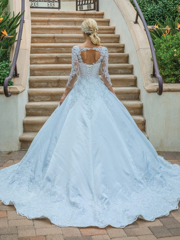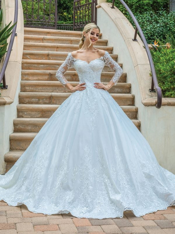 Make your fairytale wedding dreams come true with the Dancing Queen Wedding Gown 0172. This enchanting bridal dress features a romantic ball gown silhouette, adorned with intricate lace appliqués and shimmering embellishments that add a touch of regal elegance. The sweetheart neckline and off-the-shoulder design enhance the bride’s femininity, while the corset-style bodice ensures a flattering and structured fit. Flowing into a voluminous tulle skirt, this gown creates a stunning and graceful presence from the aisle to the dance floor. Perfect for brides who want to make a lasting impression on their special day.
