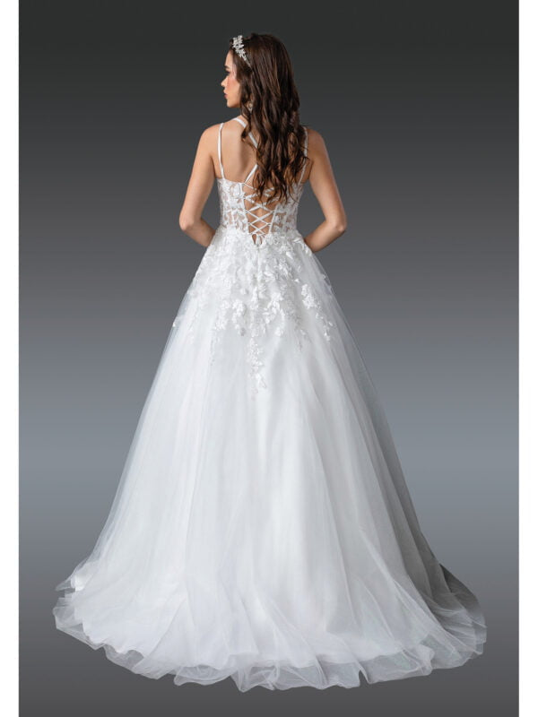 Dancing Queen Wedding Gown 0281 is the embodiment of timeless romance and sophisticated charm. This breathtaking gown features a fitted bodice with exquisite lace embroidery and delicate beading that adds a soft shimmer to every step. The off-the-shoulder neckline highlights the collarbones, while illusion details provide a touch of modern elegance. Flowing into a voluminous tulle skirt, the gown creates a graceful A-line silhouette that moves beautifully with every motion. Ideal for the bride who wants to blend classic bridal elements with contemporary flair.