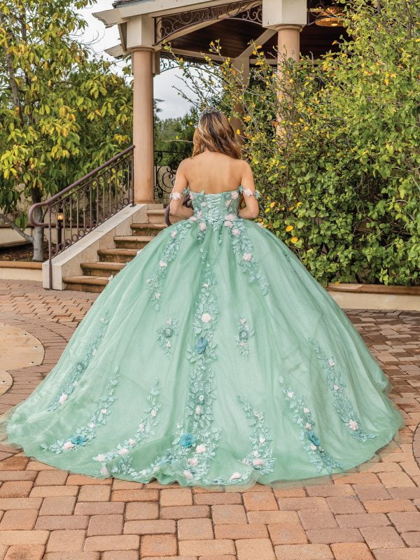 The Dancing Queen Quinceañera Dress 1828 features an elegant and timeless design, crafted with exquisite attention to detail. This gown showcases a voluminous skirt that creates a dramatic and graceful silhouette, perfect for making a grand entrance. The bodice is intricately adorned with delicate embellishments and detailed embroidery, highlighting the craftsmanship and sophistication of the dress. Designed to celebrate a young woman’s special milestone, this dress combines classic elements with modern flair, ensuring comfort and style throughout the event.
