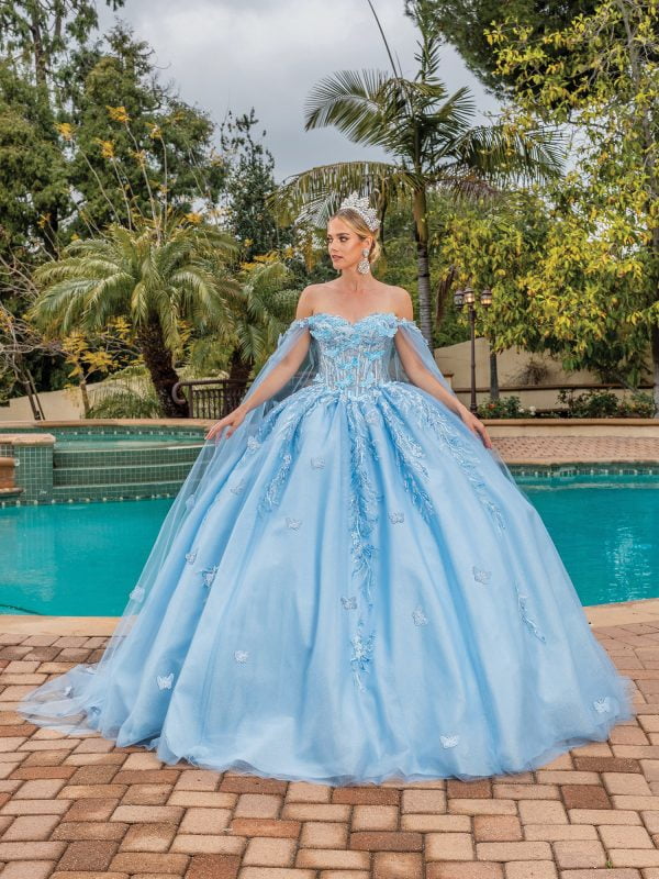 The Dancing Queen Quinceañera Dress 1889 features a stunning design that combines elegance and grandeur. This dress showcases intricate detailing with exquisite embroidery and delicate embellishments, creating a regal and sophisticated look perfect for a special celebration. The silhouette is voluminous, with layers of fabric that flow gracefully, offering a princess-like appearance. The bodice is structured to enhance the wearer’s figure, complemented by a tasteful neckline and finely crafted accents throughout. Ideal for those seeking a timeless and majestic style for their quinceañera event.