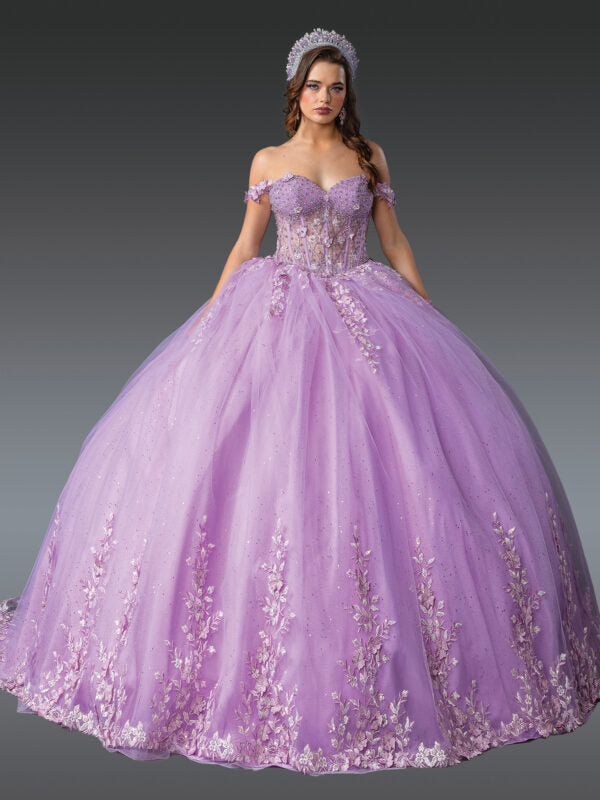 Turn heads and embrace royal elegance with the Dancing Queen Quinceañera Dress 1955. This stunning gown showcases a full ball gown silhouette adorned with intricate embellishments and a delicately designed bodice. The sweetheart neckline and corset back create a flattering and secure fit, while the dramatic skirt adds volume and movement for a breathtaking appearance. Perfect for creating unforgettable moments on your special day, this dress combines tradition and glamour in every detail.