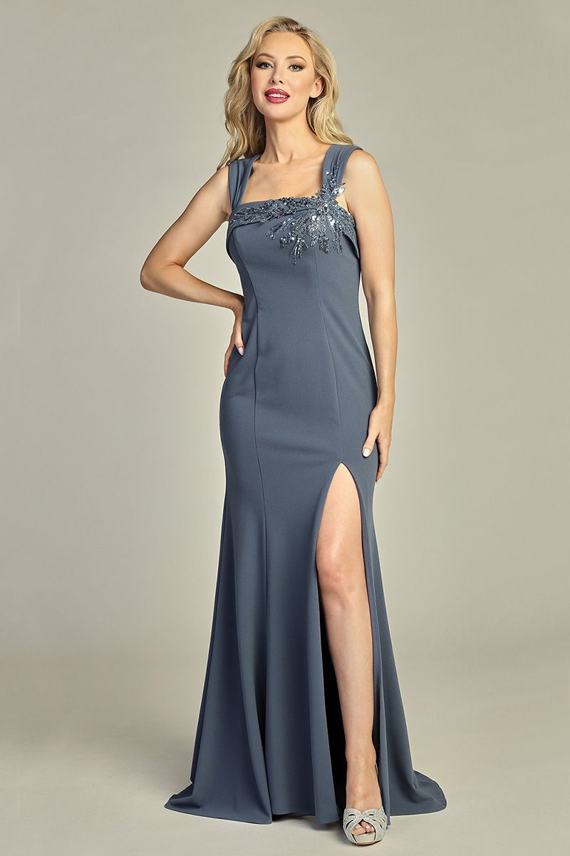 Step into elegance with Let’s dress style 7973 — a modern, figure-flattering gown in a beautiful dusty pink tone. Designed with a fitted silhouette and square neckline, it features wide supportive straps and delicate bead embroidery across the bust for a touch of sparkle. The side slit adds a bold yet graceful finish, making it ideal for evening events, galas, or formal celebrations.