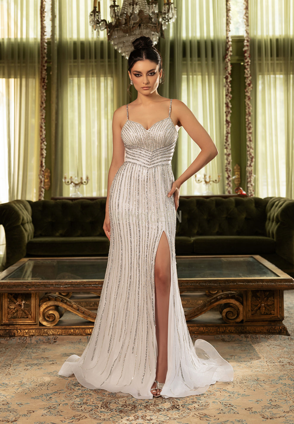 Elevate your entrance with the exquisitely crafted MayQueen RQ8169, a gown that radiates sophisticated allure. This sleeveless creation features a fitted bodice richly embellished with sparkling beadwork, embodying both refinement and glamour . The romantic sweetheart neckline beautifully enhances the décolletage, delivering a touch of graceful romance . The gown flows into a long sheath silhouette that elegantly follows the body’s natural line, while a daring high slit introduces a dynamic and modern edge . At the hem, a structured horsehair detail adds poise and movement, complemented by a sweeping train that leaves a lasting impression with every step . This ensemble is perfect for galas, prom nights, or any formal event where commanding elegance is essential.