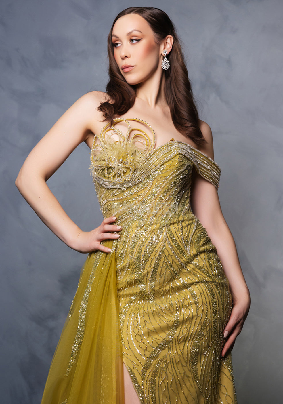 Presenting a gown that exudes refined elegance and individuality, the MayQueen RQ8178 is a standout choice for any formal occasion. It features an off-the-shoulder neckline paired with a fitted bodice lavishly decorated with intricate beadwork and sequins, creating a mesmerizing, luxurious finish. The bodice is further enhanced by unique circular patterns that add an artistic and sophisticated flair .Transitioning into a sleek sheath silhouette, the floor-length skirt offers a graceful, elongated appearance, perfectly balancing poise and movement . Notable design touches such as a slip-style high slit, a trailing sweep train, and a back zipper closure enhance both the dress’s elegance and functionality . This gown is a beautiful fusion of confidence, artistry, and glamour—ideal for prom nights, galas, red-carpet events, or any evening where commanding sophistication is key.